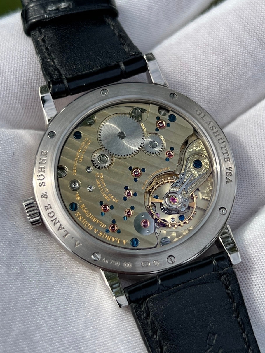 A very special watch from one of the best brands in the industry! The 39mm case size is only the first of many amazing aspects of this watch. The dial is clean, classic and sports blue hands that look incredible. Call or text Chris today at 631-560-2269 for more information on this amazing Lange 234.026 white gold 39mm watch