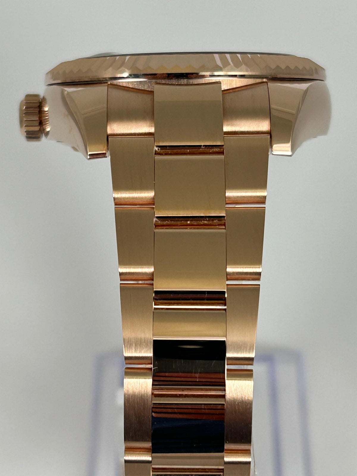 This Sky-Dweller has an amazing look. The solid Rose gold band and case give it a great feel and the Rhodium dial is stunning! The current market on this piece is outstanding and this one is in excellent condition!